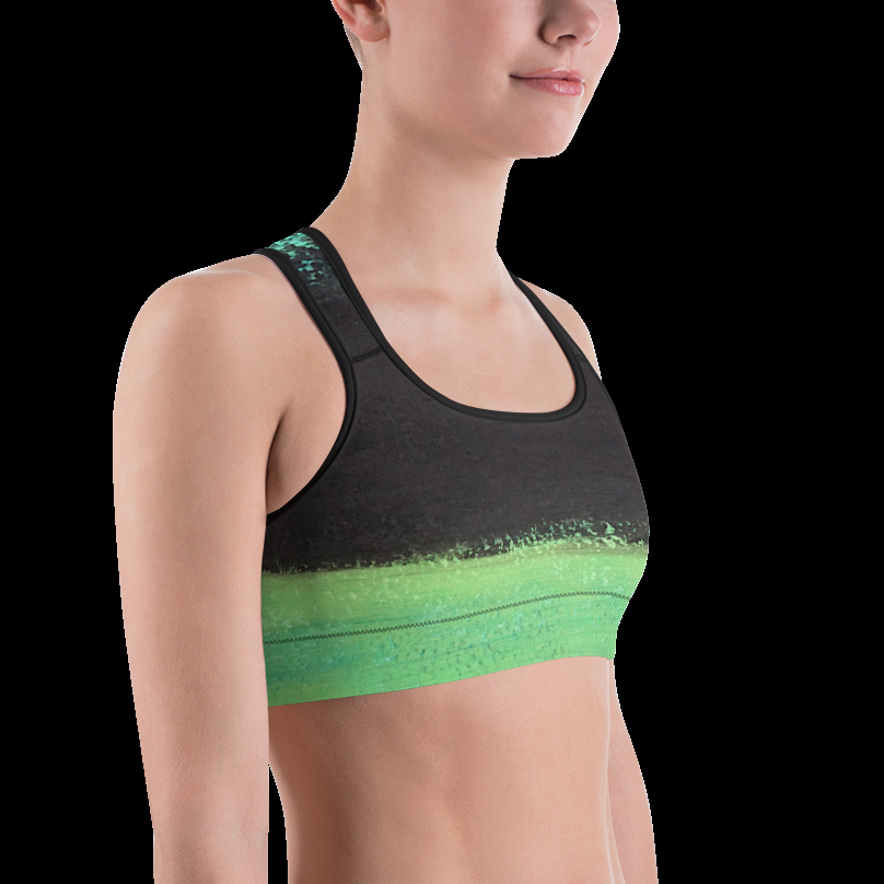 This gorgeous sports bra is made from moisture-wicking material that stays dry during low and medium intensity workouts. The bra has support material in the shoulder straps, double layer front, and a wide elastic band to ensure constant support.