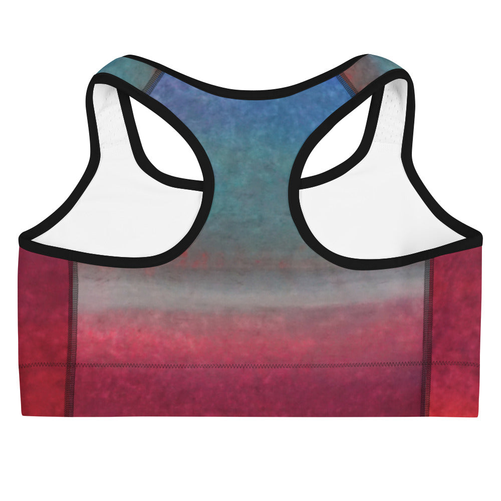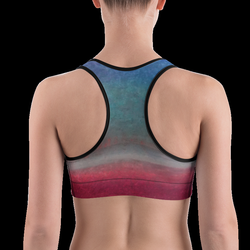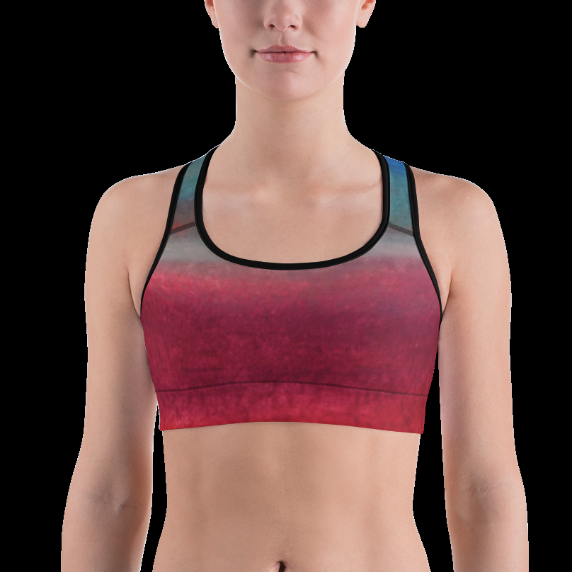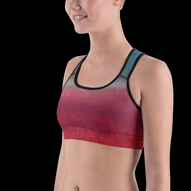 This gorgeous sports bra is made from moisture-wicking material that stays dry during low and medium intensity workouts. The bra has support material in the shoulder straps, double layer front, and a wide elastic band to ensure constant support.