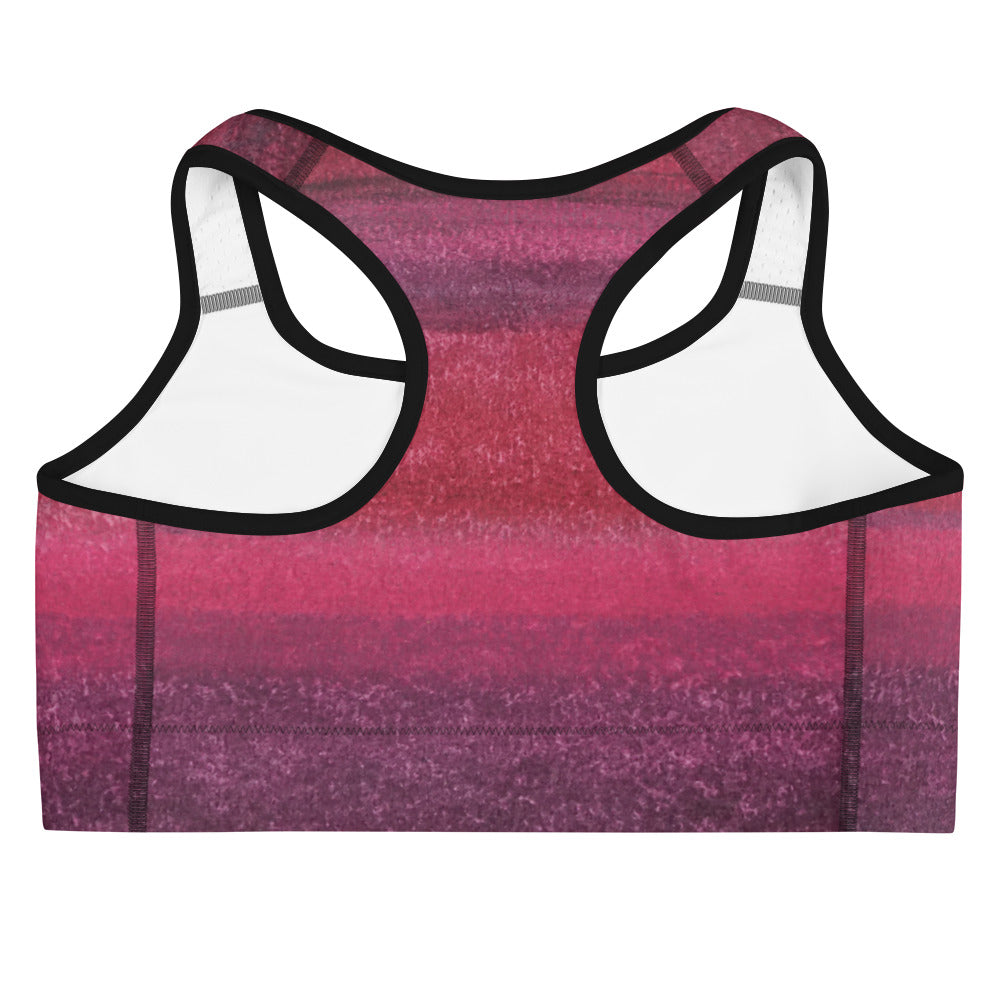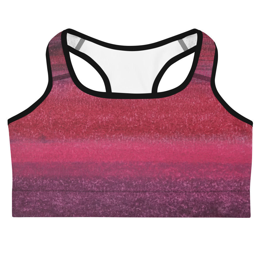 This gorgeous sports bra is made from moisture-wicking material that stays dry during low and medium intensity workouts. The bra has support material in the shoulder straps, double layer front, and a wide elastic band to ensure constant support.