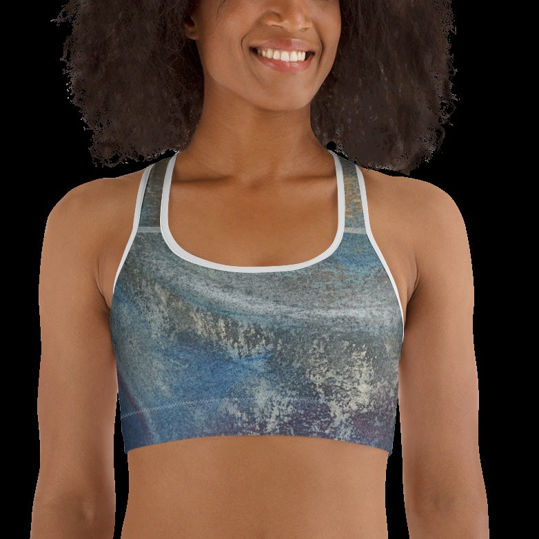 This gorgeous sports bra is made from moisture-wicking material that stays dry during low and medium intensity workouts. The bra has support material in the shoulder straps, double layer front, and a wide elastic band to ensure constant support.