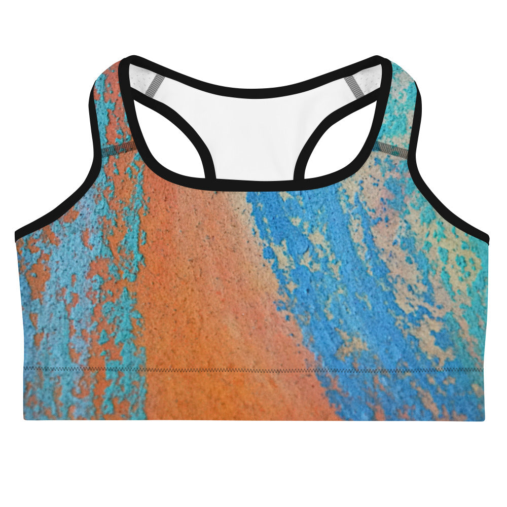 This gorgeous sports bra is made from moisture-wicking material that stays dry during low and medium intensity workouts. The bra has support material in the shoulder straps, double layer front, and a wide elastic band to ensure constant support.