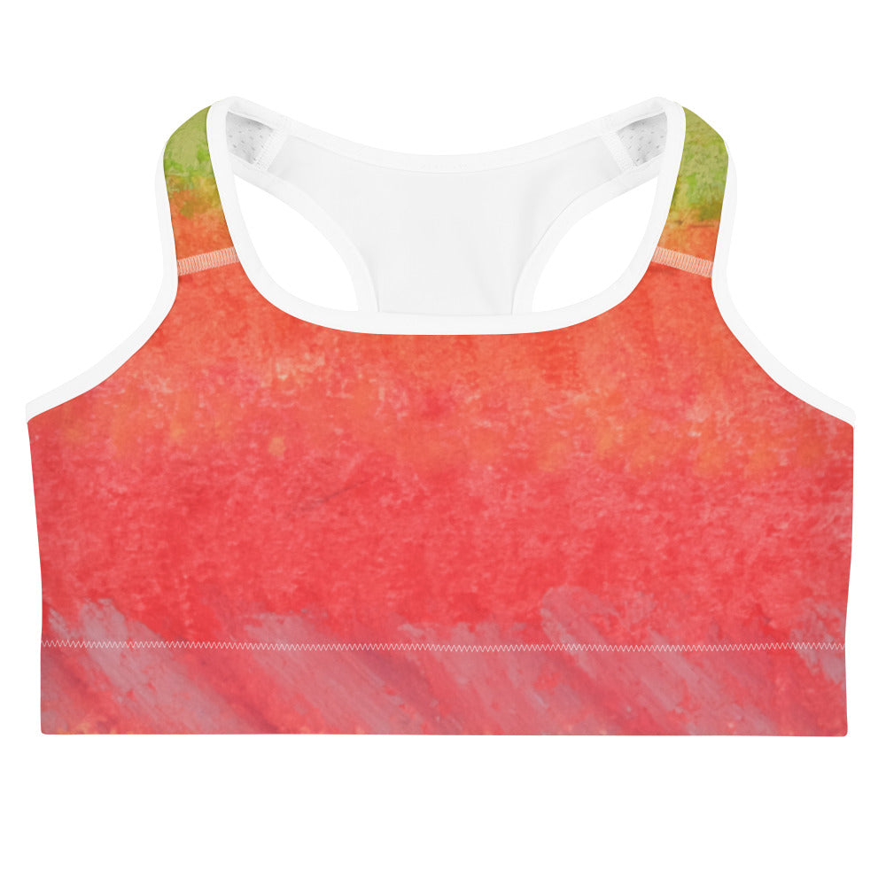 This gorgeous sports bra is made from moisture-wicking material that stays dry during low and medium intensity workouts. The bra has support material in the shoulder straps, double layer front, and a wide elastic band to ensure constant support.