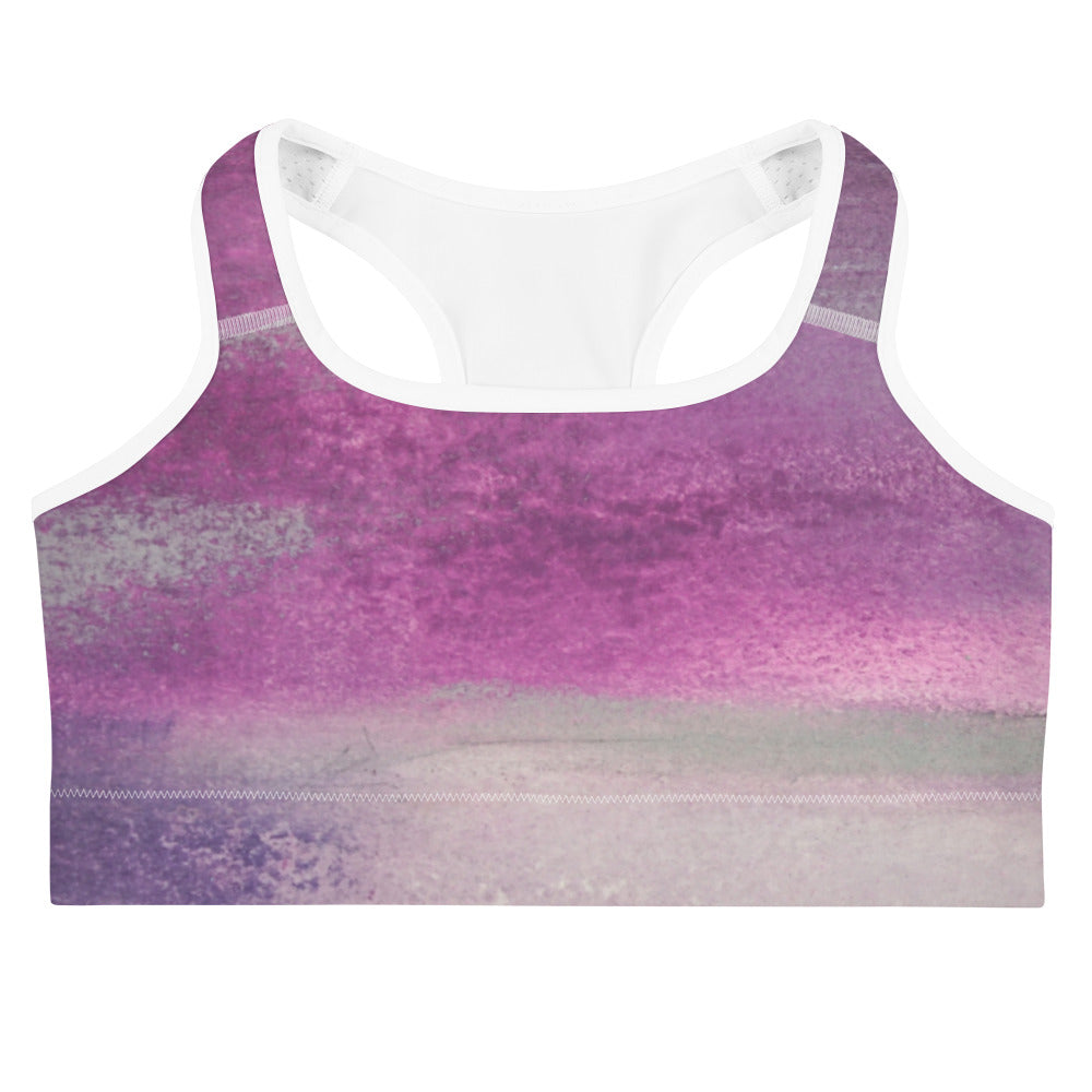 This gorgeous sports bra is made from moisture-wicking material that stays dry during low and medium intensity workouts. The bra has support material in the shoulder straps, double layer front, and a wide elastic band to ensure constant support.