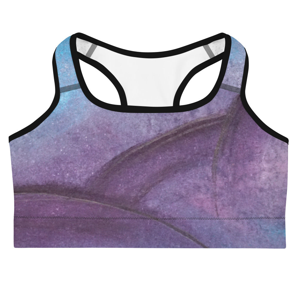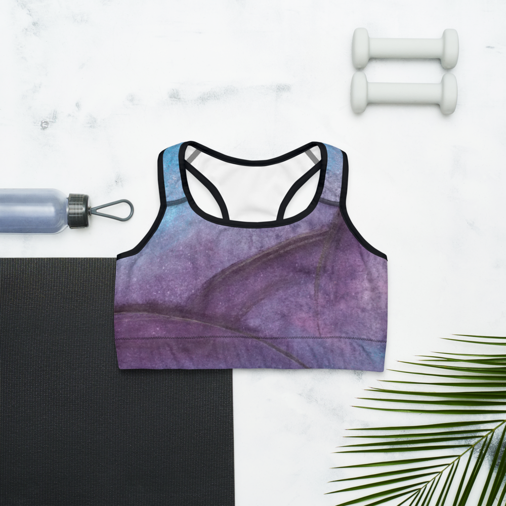 This gorgeous sports bra is made from moisture-wicking material that stays dry during low and medium intensity workouts. The bra has support material in the shoulder straps, double layer front, and a wide elastic band to ensure constant support.