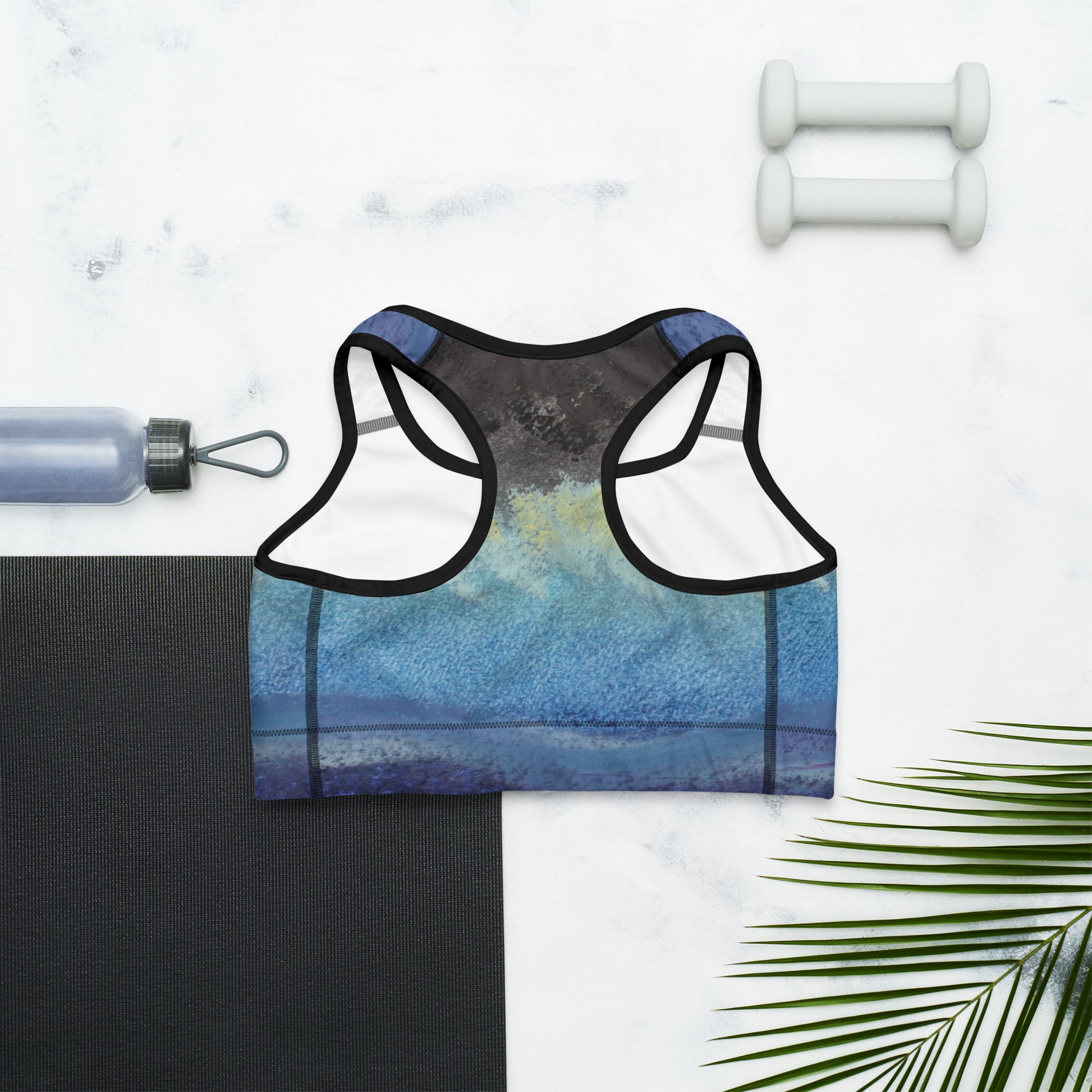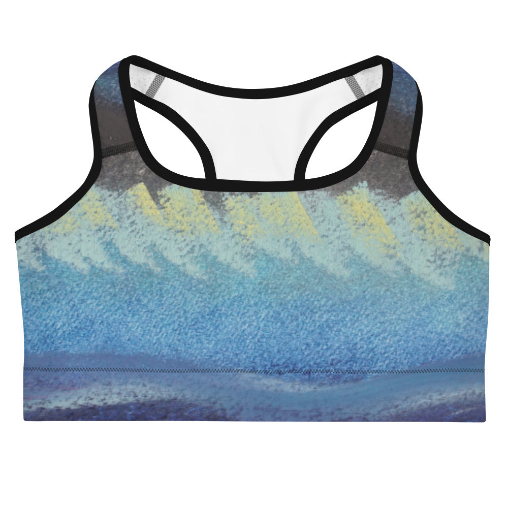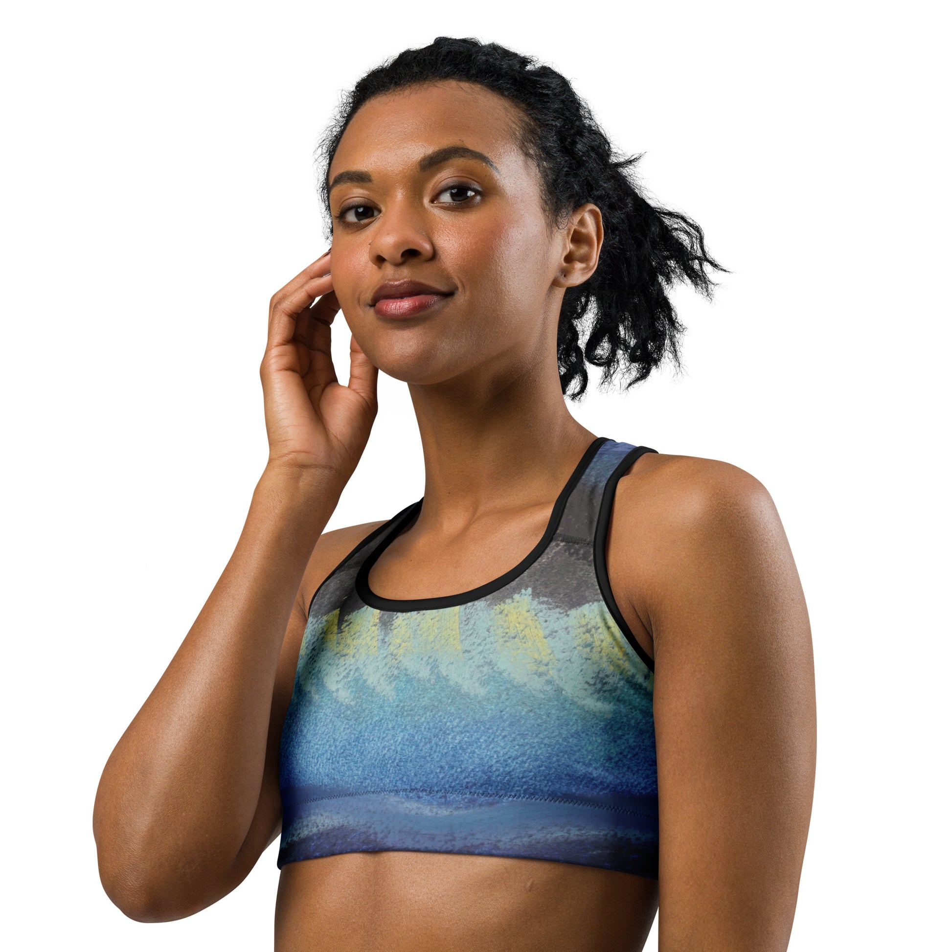This gorgeous sports bra is made from moisture-wicking material that stays dry during low and medium intensity workouts. The bra has support material in the shoulder straps, double layer front, and a wide elastic band to ensure constant support.