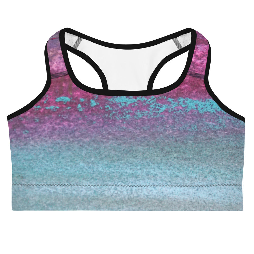 This gorgeous sports bra is made from moisture-wicking material that stays dry during low and medium intensity workouts. The bra has support material in the shoulder straps, double layer front, and a wide elastic band to ensure constant support.