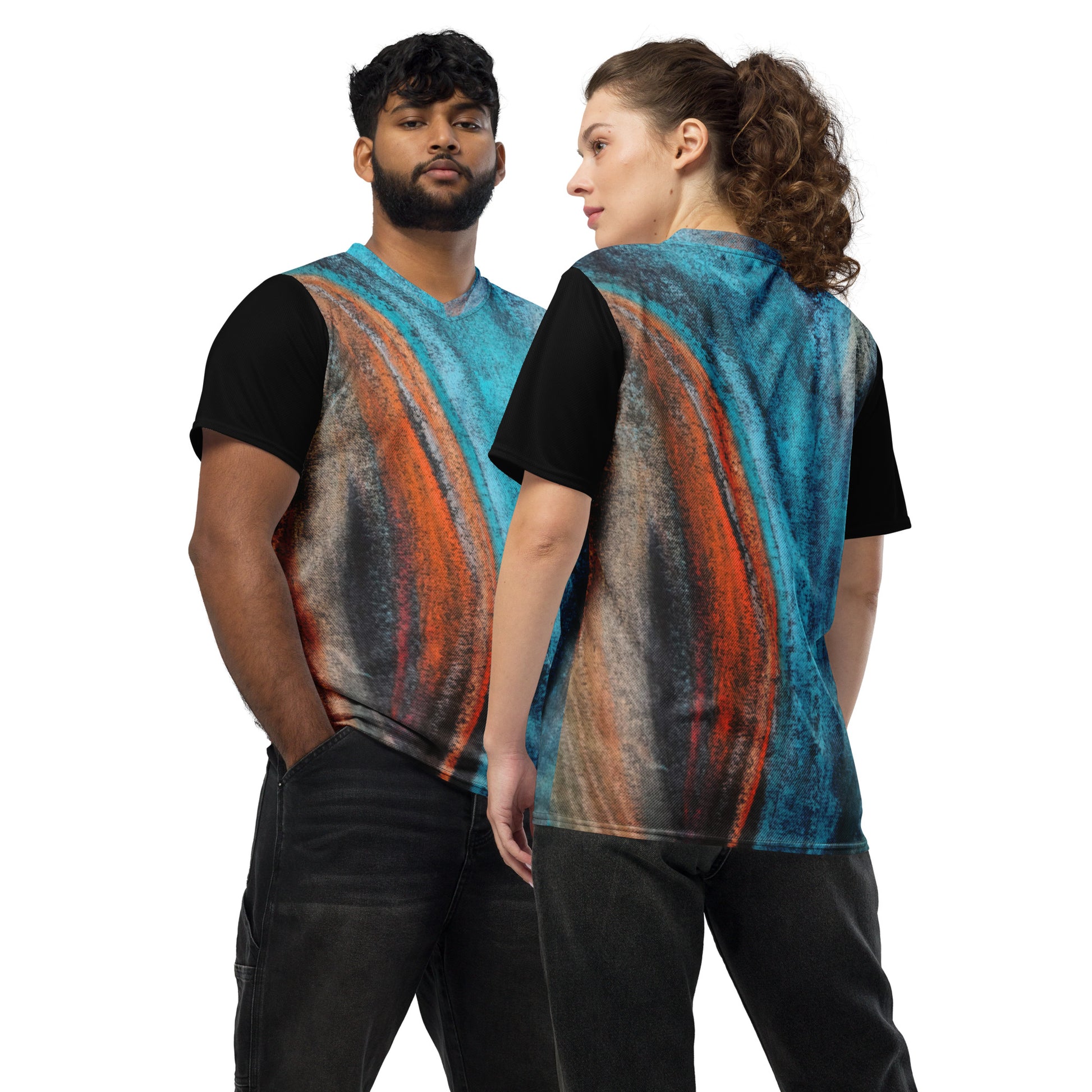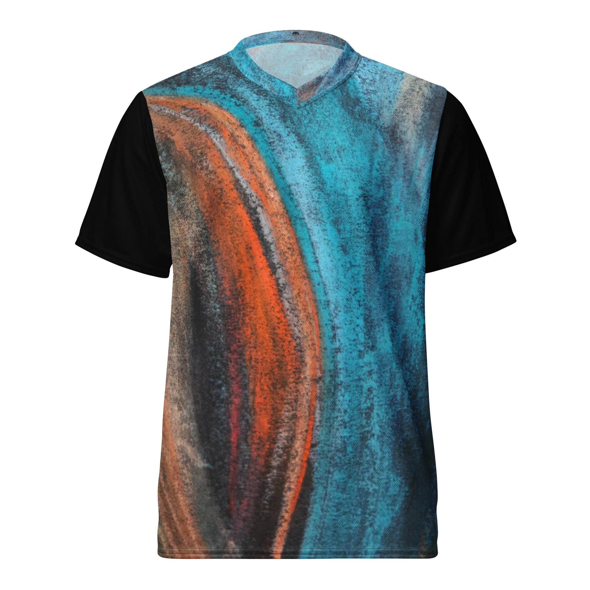 Looking for the perfect sports jersey? We have you covered—made of 100% recycled polyester fabric, this shirt is breathable, moisture-wicking, and has a double-layered v-neck collar that creates a premium look.