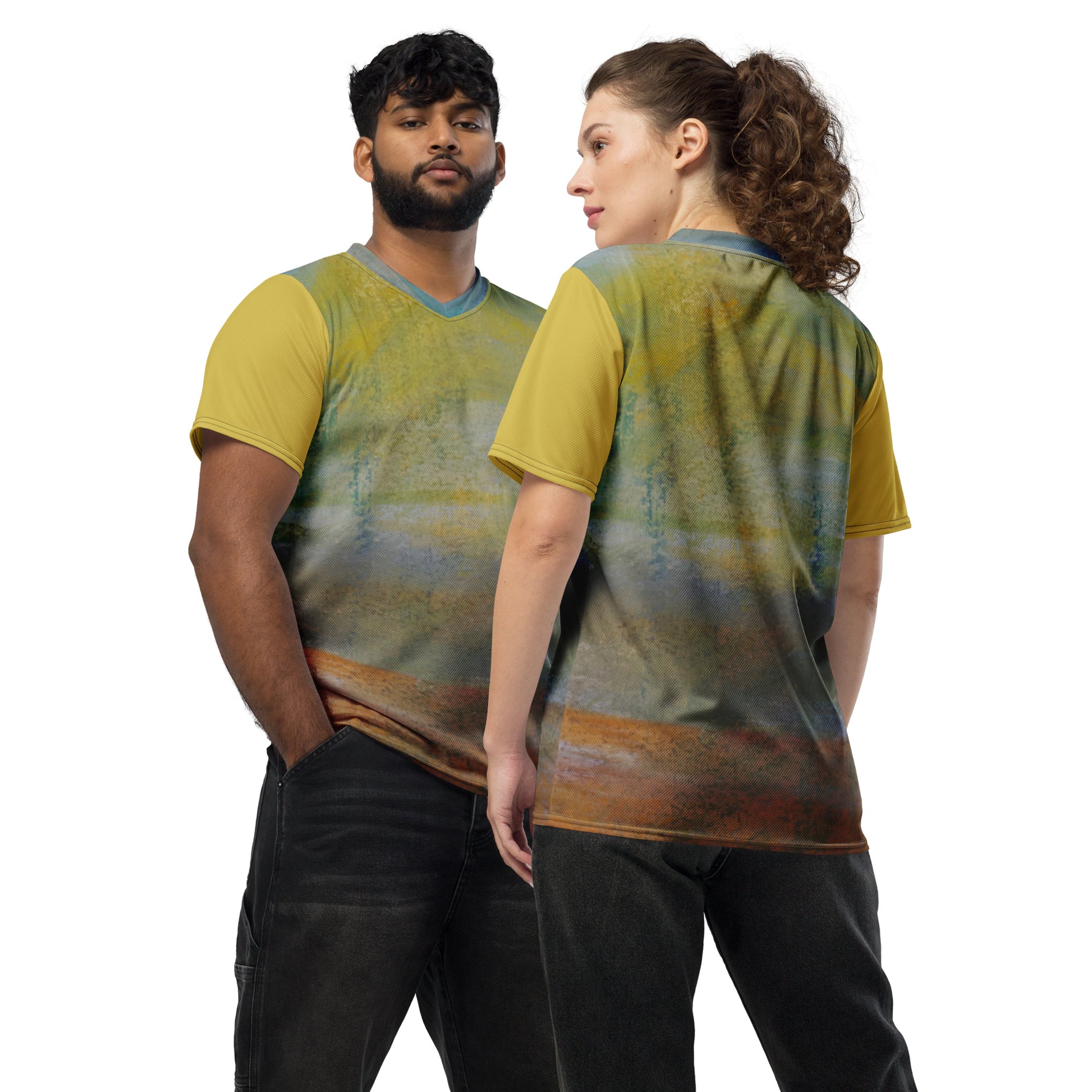 Looking for the perfect sports jersey? We have you covered—made of 100% recycled polyester fabric, this shirt is breathable, moisture-wicking, and has a double-layered v-neck collar that creates a premium look.